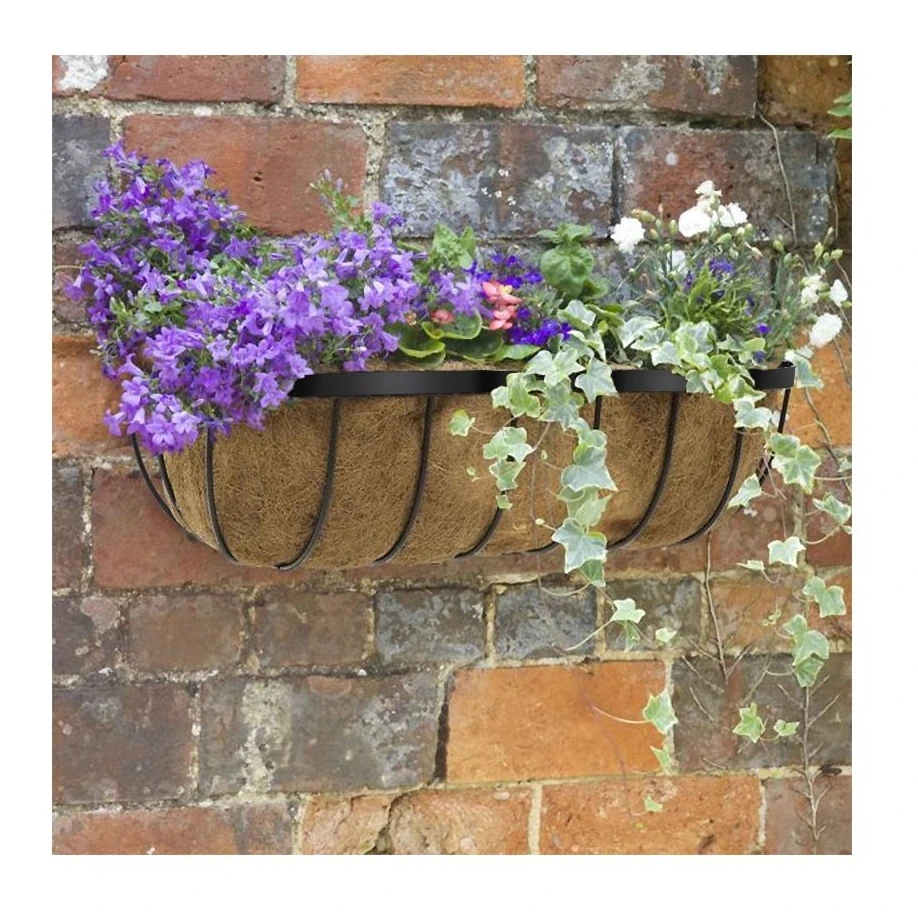 Metal hanging basket with integral coco liner for longer life