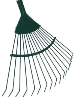 This Lawn Rake has a unique curved fan shape and a wide raking span which effectively cleans and collects grass from large areas. The tines are made of flexible spring steel which means they will move around stones and gravel as the rake is pulled. The tines are also designed to glide across the grass without digging in and damaging it.